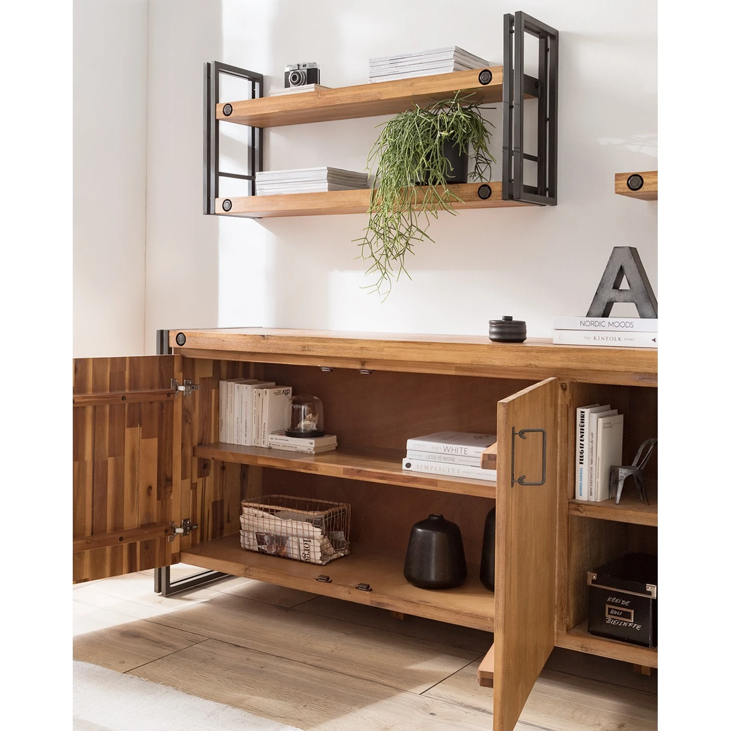 - Front & Korpus: Massivholz Akazie, gebürstet & lackiert