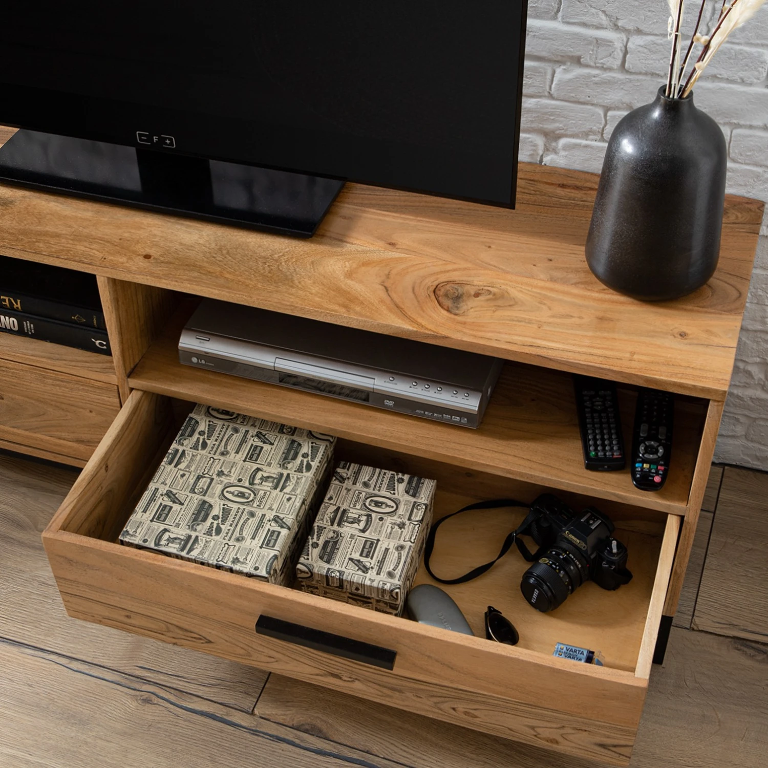 Ars manufacti TV-Lowboard Woodson V – Akazie massiv / Metall – Akazie Hellbraun