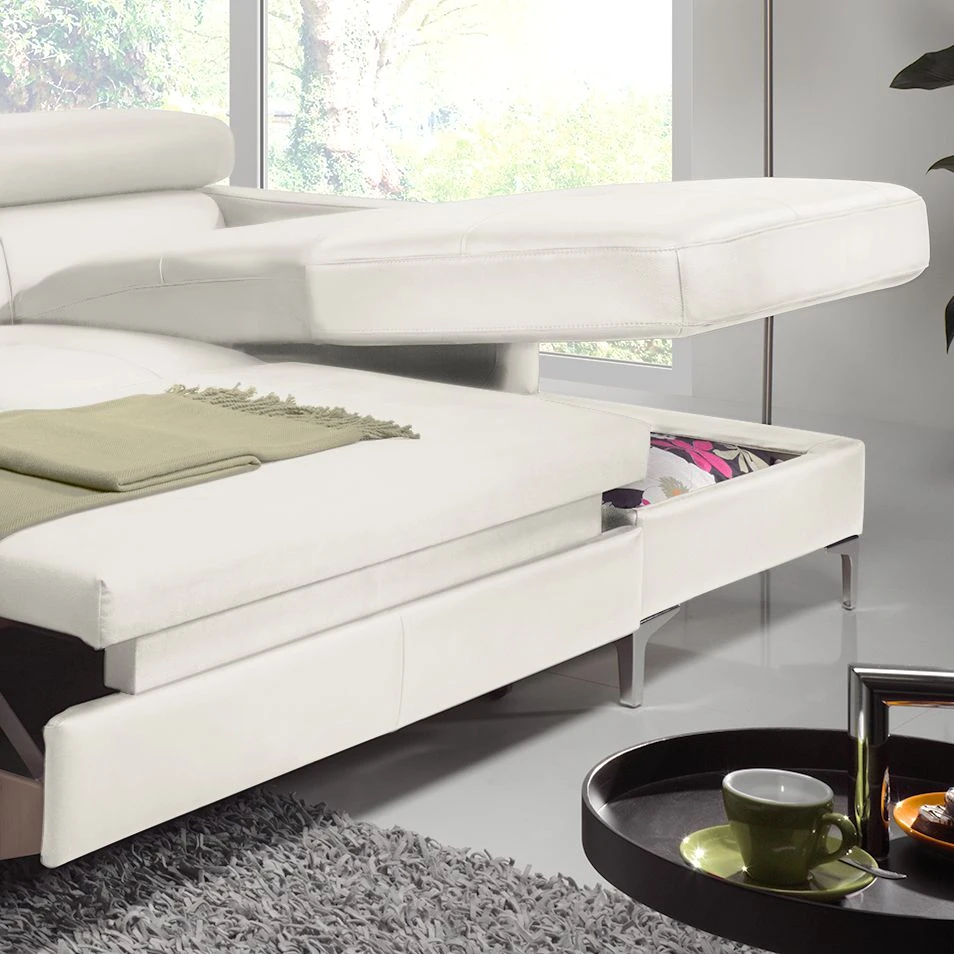 - Geräumiger Bettkasten mit Kipp-Auf-Beschlag im Longchair