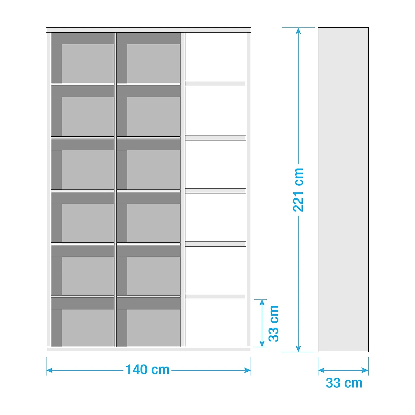 - Anzahl feste Fachböden: 6 Fachböden