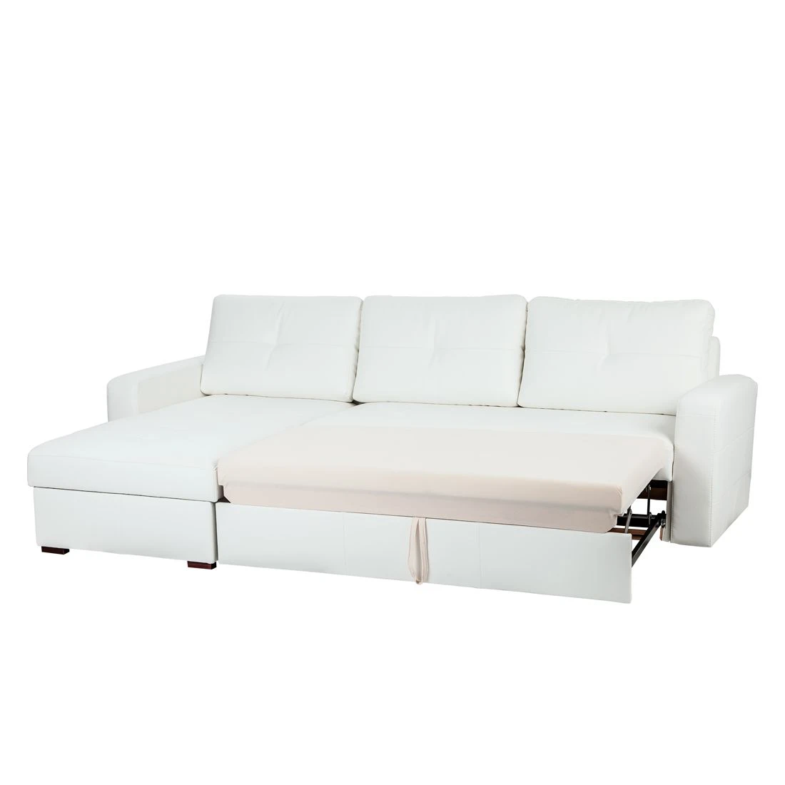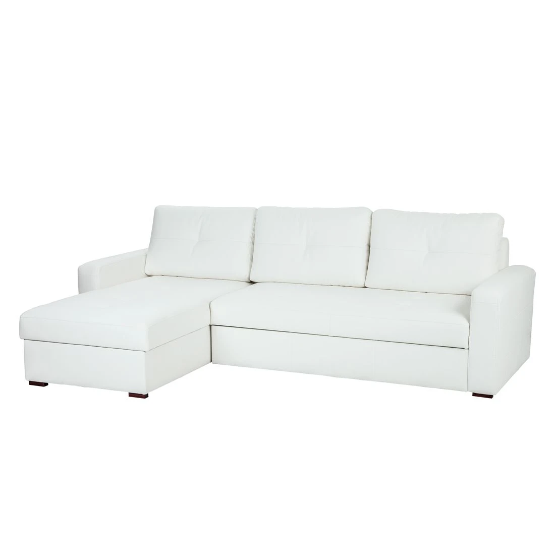 Liebhaber des modernen Designs wird dieses weiße Sofa mit Schlaffunktion aus der Serie Cavolo von Fredriks ansprechen. Hergestellt ist es aus Kunstleder. Das praktische Kunstleder hat folgenden Vorteil: Es verspricht eine lange Lebensdauer. Garantiert bequem sitzen Sie durch die weiche Wellenunterfederung ebenfalls. Je nach Bedarf können Sie das Ecksofa aufgrund seiner Schlaffunktion einfach als Bett nutzen. Mit nur wenigen Handgriffen vergrößern Sie die Liegefläche auf 140 x 220 cm.