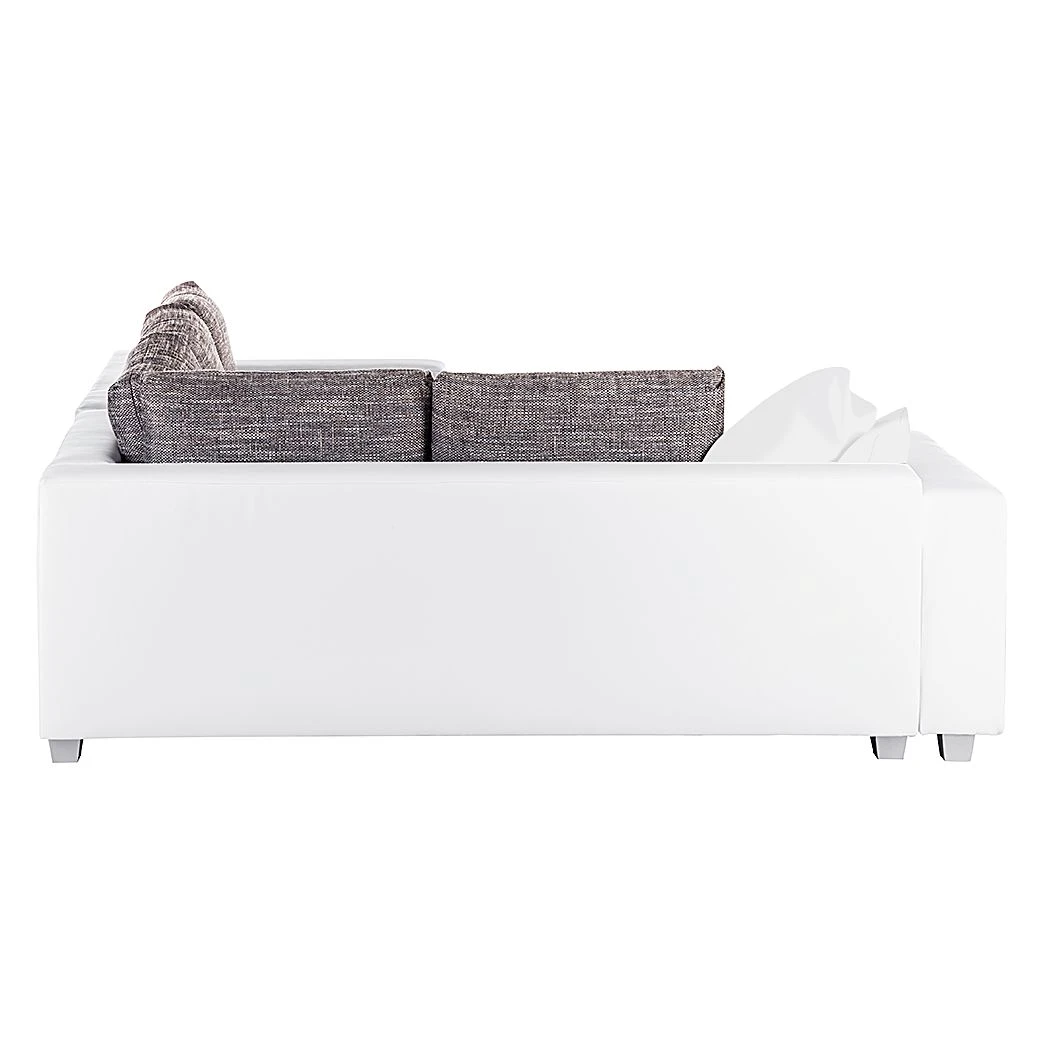 Liebhaber des modernen Designs wird dieses weiß-graue Ecksofa aus der Serie Dublin von Fredriks ansprechen. Hergestellt ist es aus Strukturstoff, Webstoff und Kunstleder. Der unempfindliche Webstoff hält zahlreichen Belastungen stand. Darüber hinaus genießen Sie dank dem belastbaren Federkern einen hohen Komfort. Besonders praktisch ist die Schlaffunktion, dank der Sie das Sofa im Nu in ein Bett umbauen. Die Liegefläche lässt sich im Handumdrehen auf 140 x 200 cm erweitern.