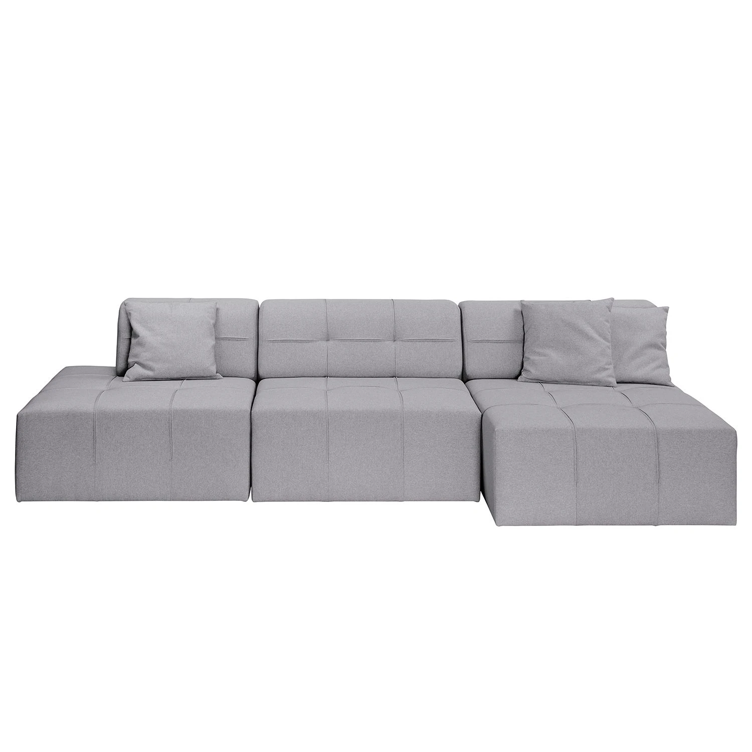- Lieferumfang: Ecksofa inkl. 3 Zierkissen, ohne Dekoration