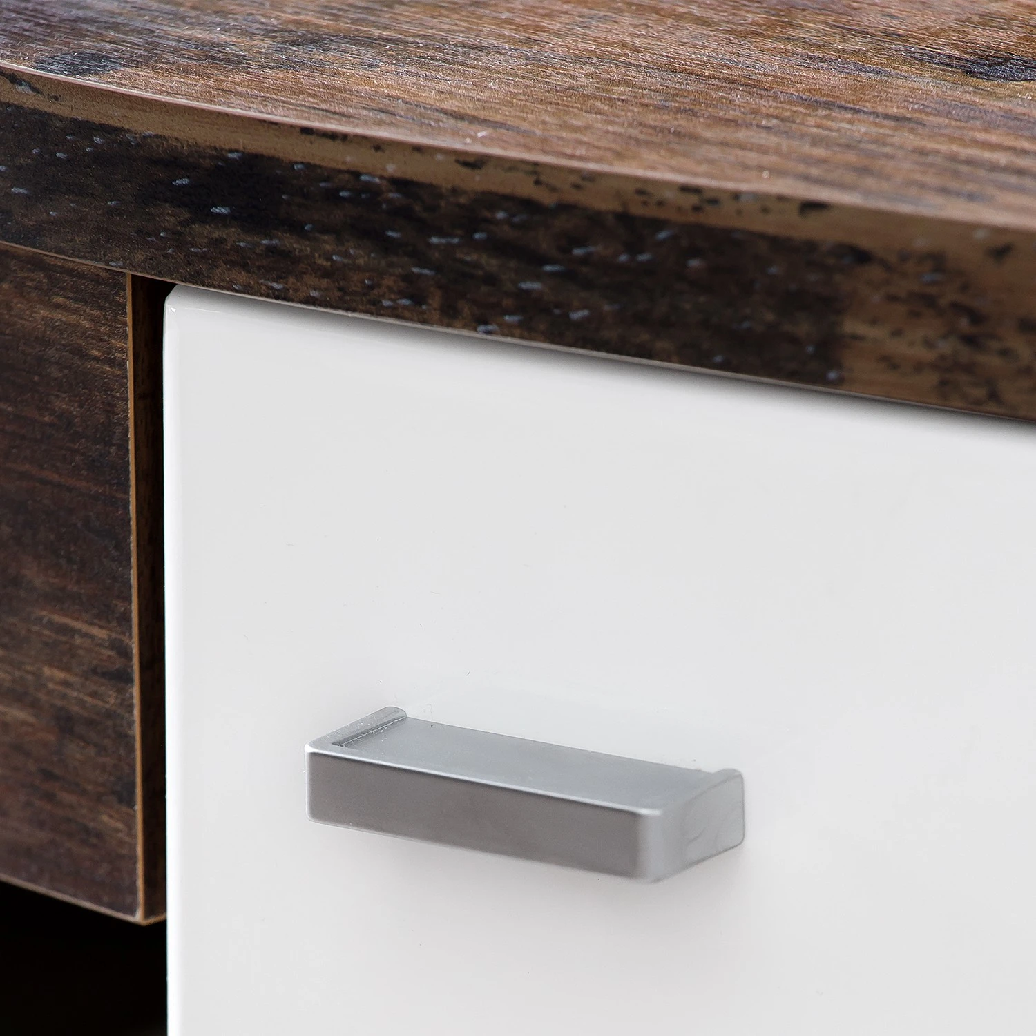 - Hochglanz Weiß / Altholz Dekor