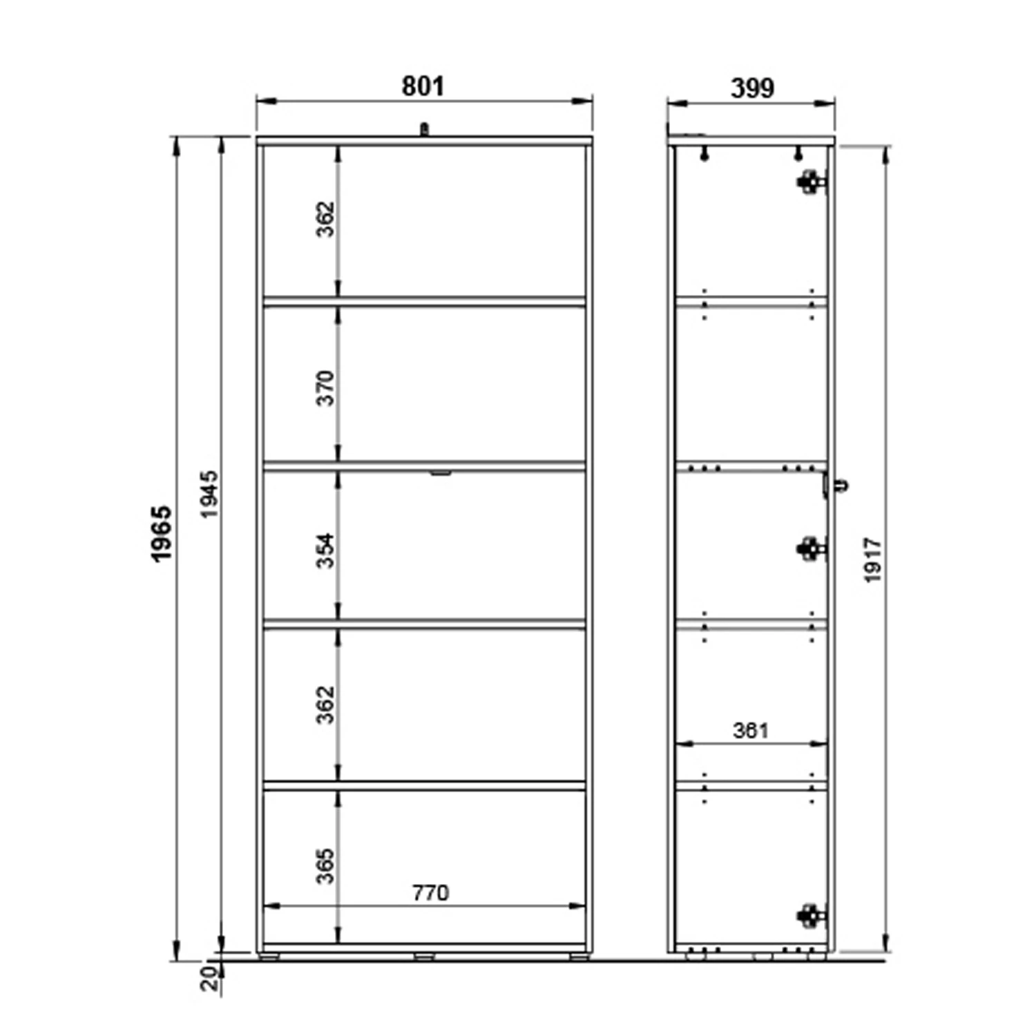 - Anzahl feste Fachböden: Ohne Fachboden