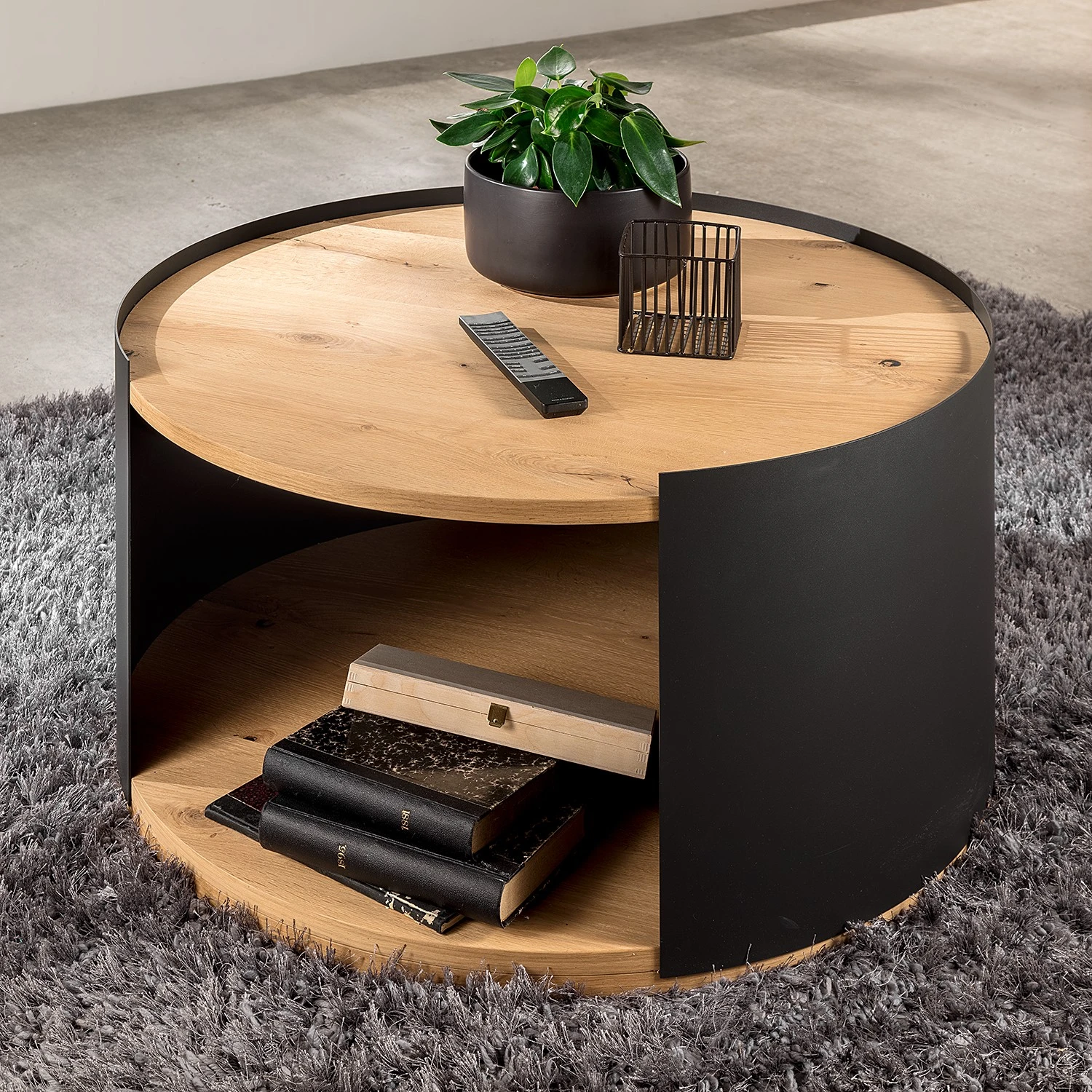 - Tischplatte & Bodenplatte: Eiche