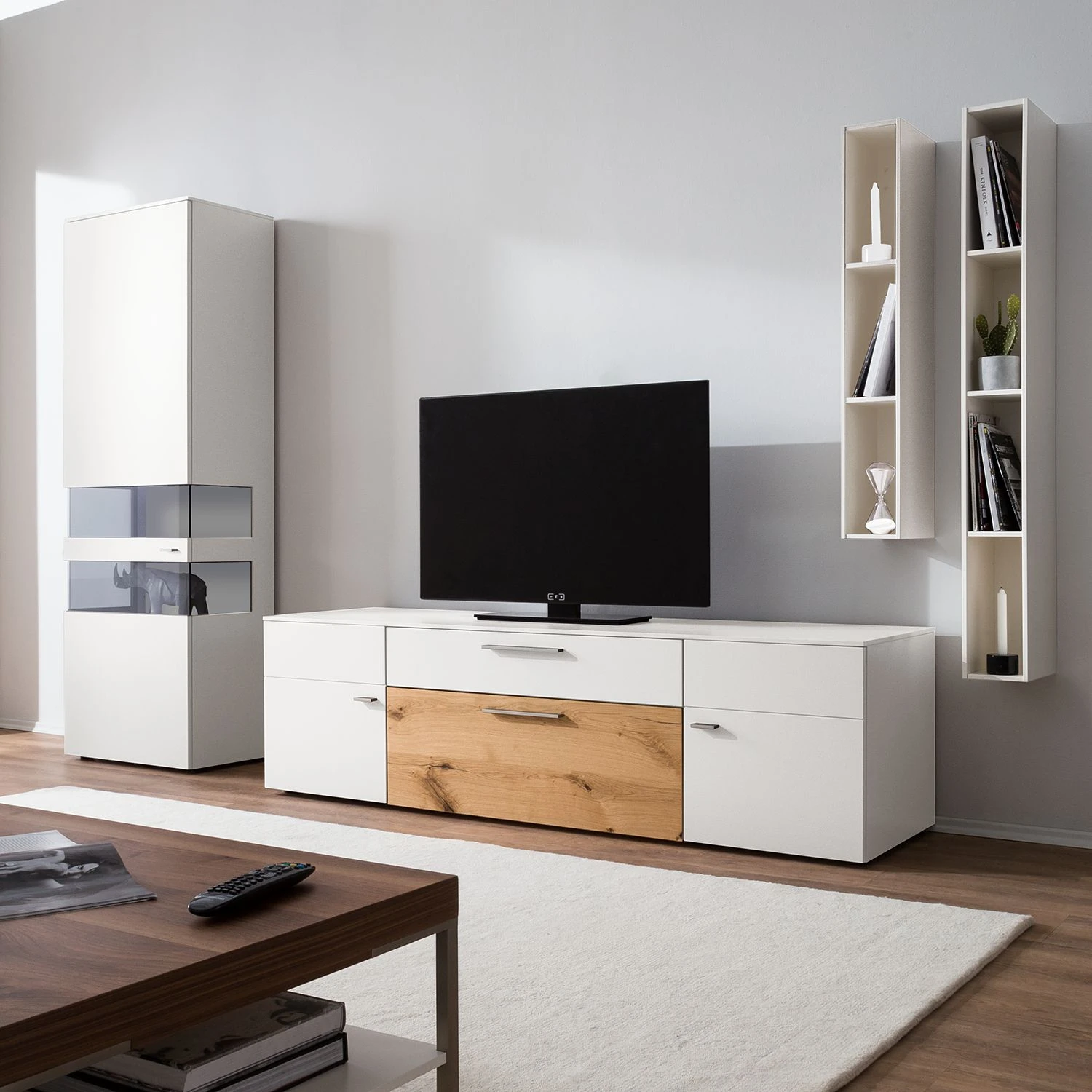- Lieferumfang: TV-Lowboard ohne Dekoration
