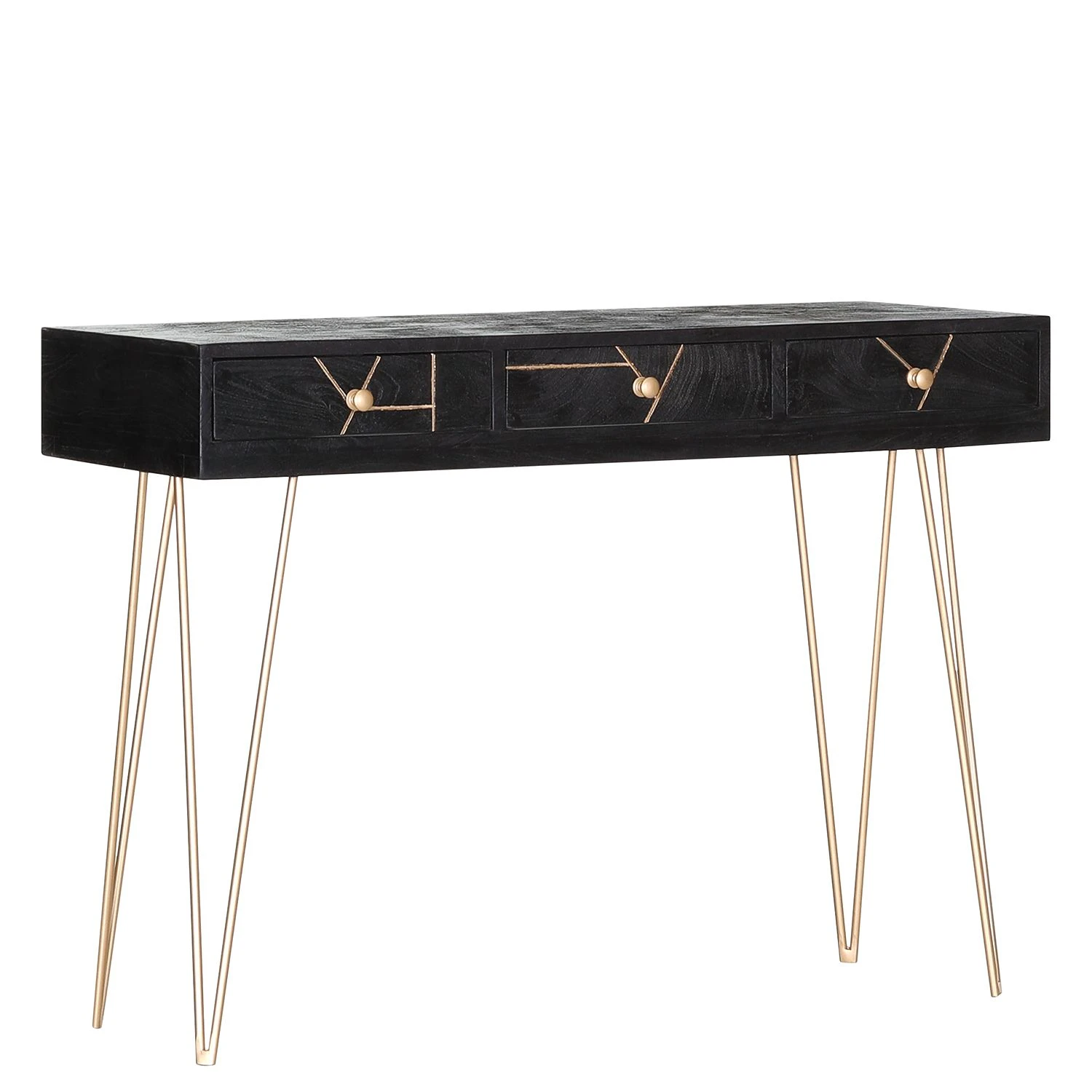 - Front & Korpus: Schwarz mit goldfarbenen Einfräsungen