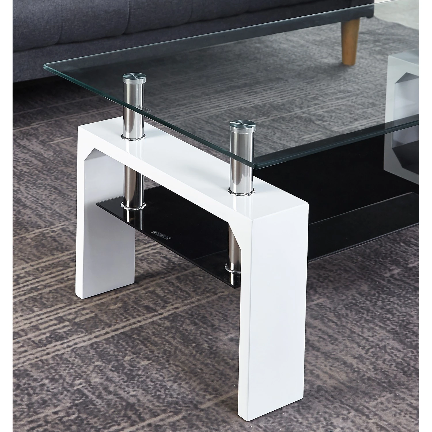 - Tischplatte & Ablage: Glas