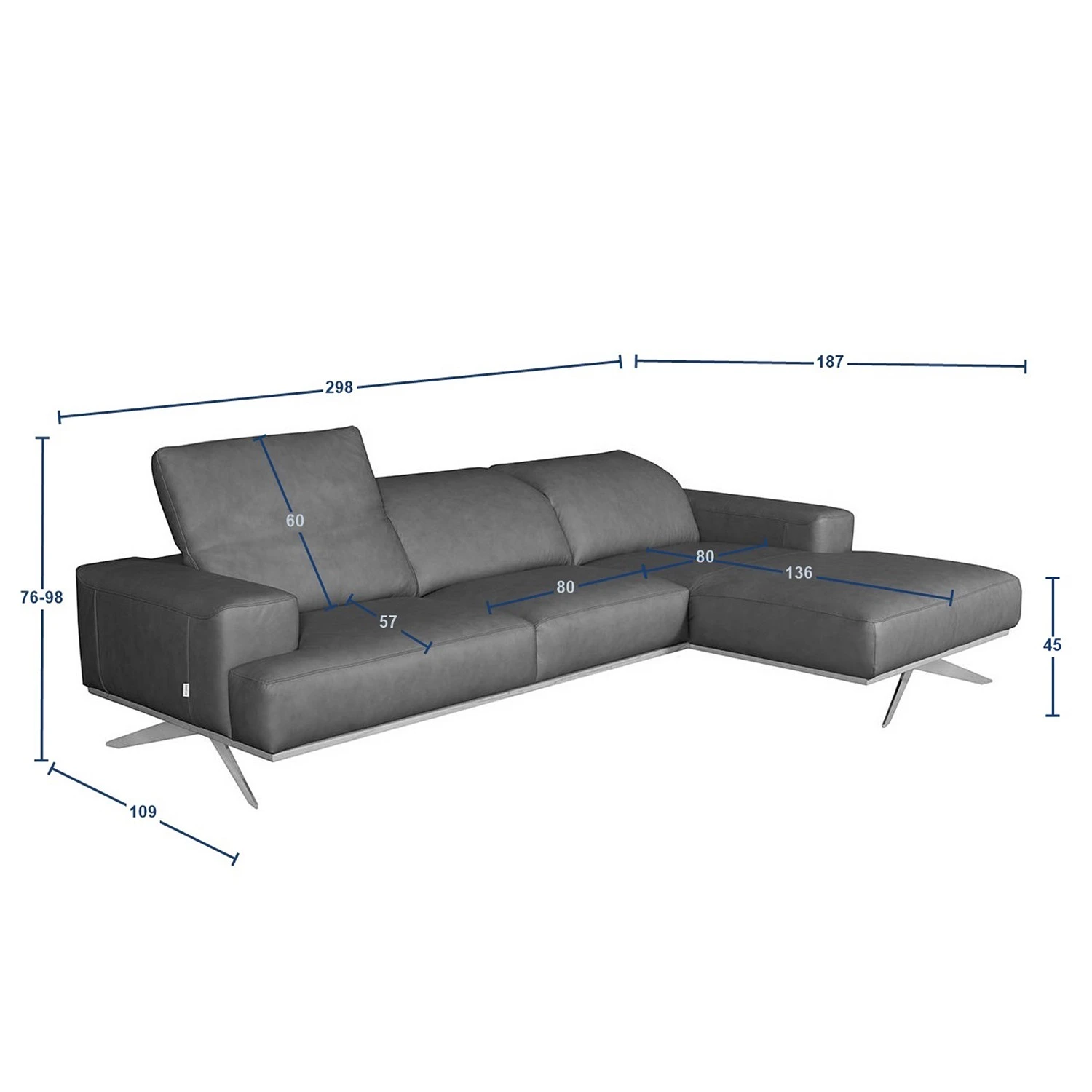 - Breite Longchair: 80 cm
