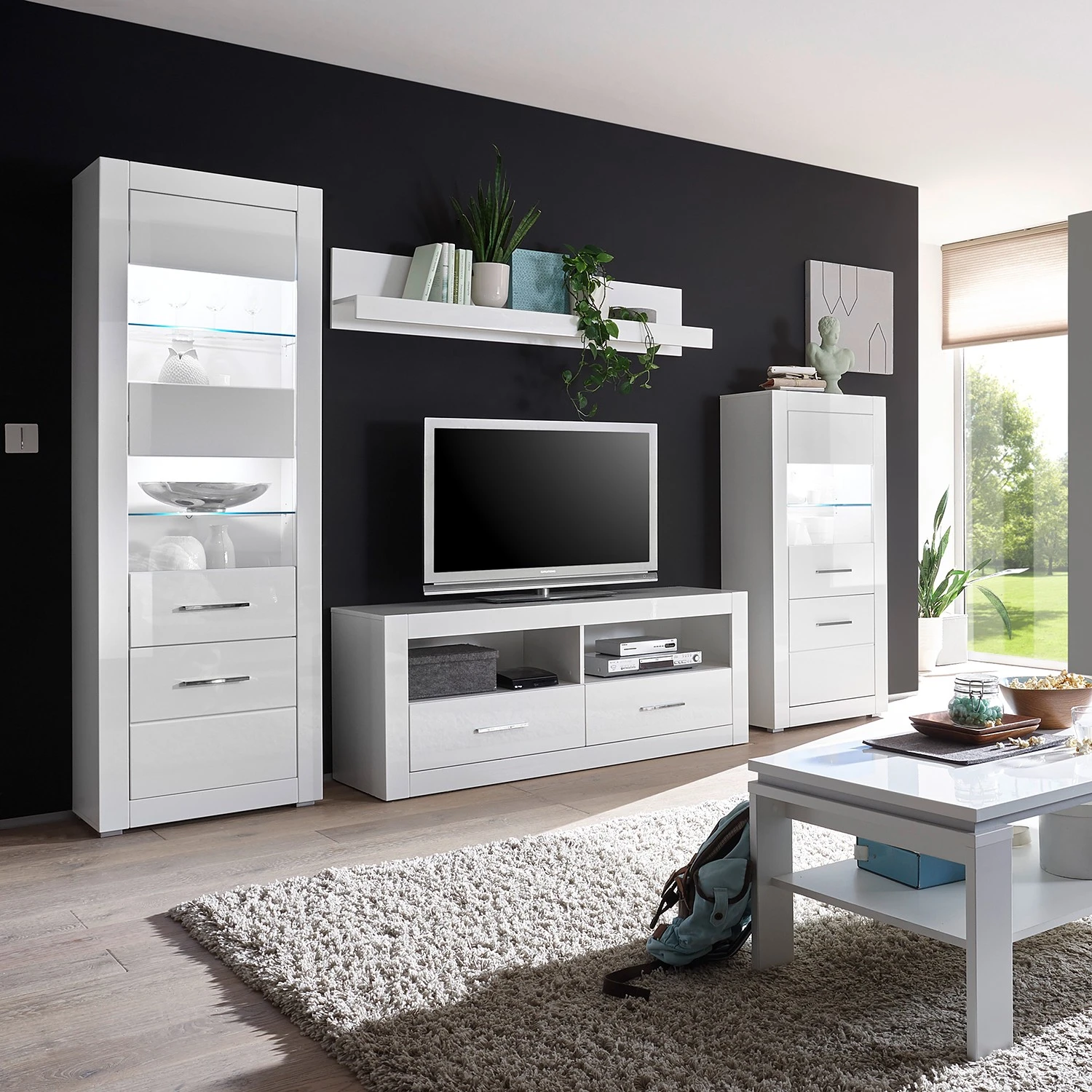 Loftscape Highboard Bricktown II – Hochglanz Weiß / Matt Weiß