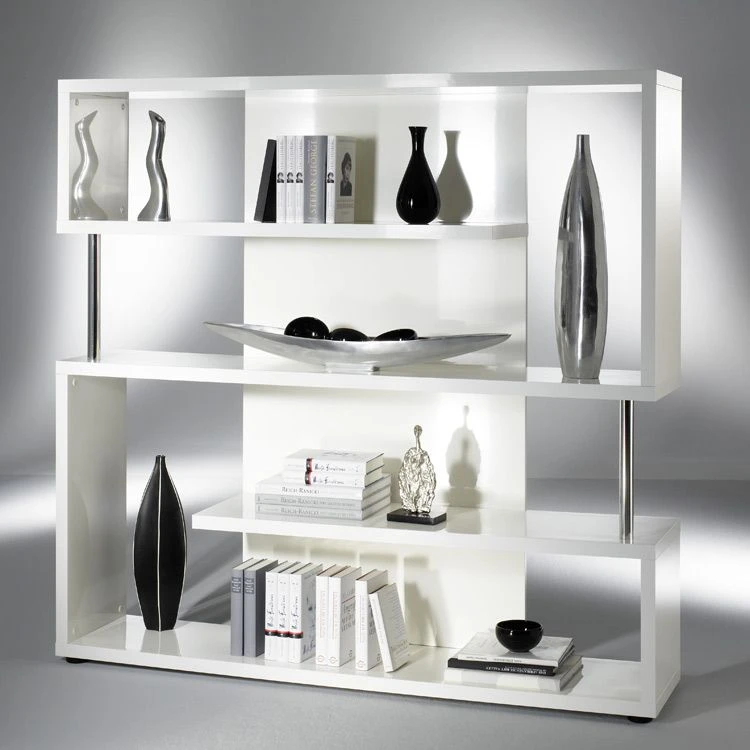 Das Regal Wasco 2 von loftscape setzt ein ausdruckstarkes Statement für ein modernes Wohnambiente. Durch die hochglanzweiße Optik lässt sich dieses Modell leicht in Ihr bestehendes Inventar integrieren und sorgt mit gewählten Accessoires und Dekoelementen für einen stilsicheren Auftritt. Die vier breiten offenen Fächer liefern Platz für eine großzügige Auswahl geeigneter Gegenstände. Die Chromrohre komplettieren das ästhetische Gesamtbild und garantieren einen edlen Eyecatcher. Kombinieren Sie dieses Regal mit minimalistischen Möbelstücken und kreieren Sie so eine atemberaubende designorientierte Atmosphäre.
