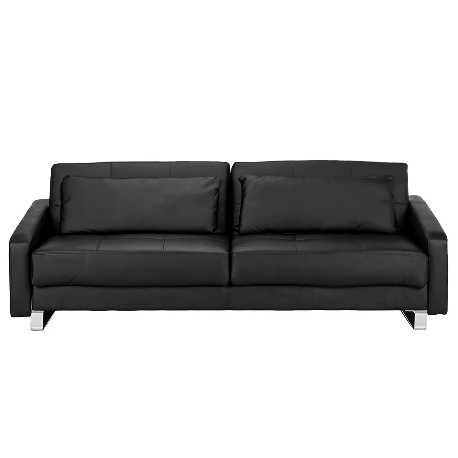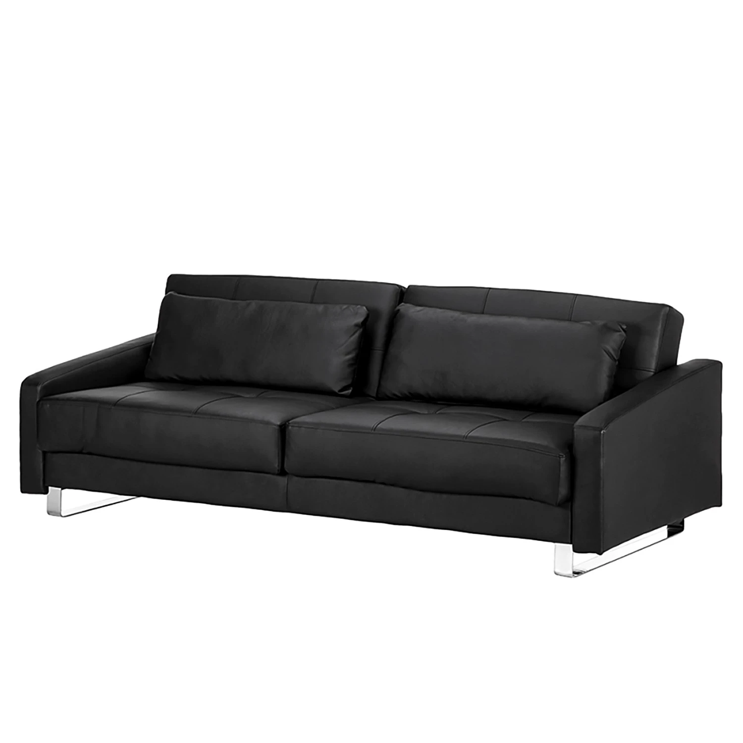 Das Schlafsofa Club überzeugt auf der ganzen Linie: Das geradlinige Polstermöbel ist mit schwarzem Kunstleder bezogen und aufwendigen Steppungen versehen. Zusammen mit den edlen Bügelfüßen wirkt das Sofa wunderbar elegant. Für alle Ausrichtungen – der Rundum-Bezug ermöglicht Ihnen eine freie Raumgestaltung.