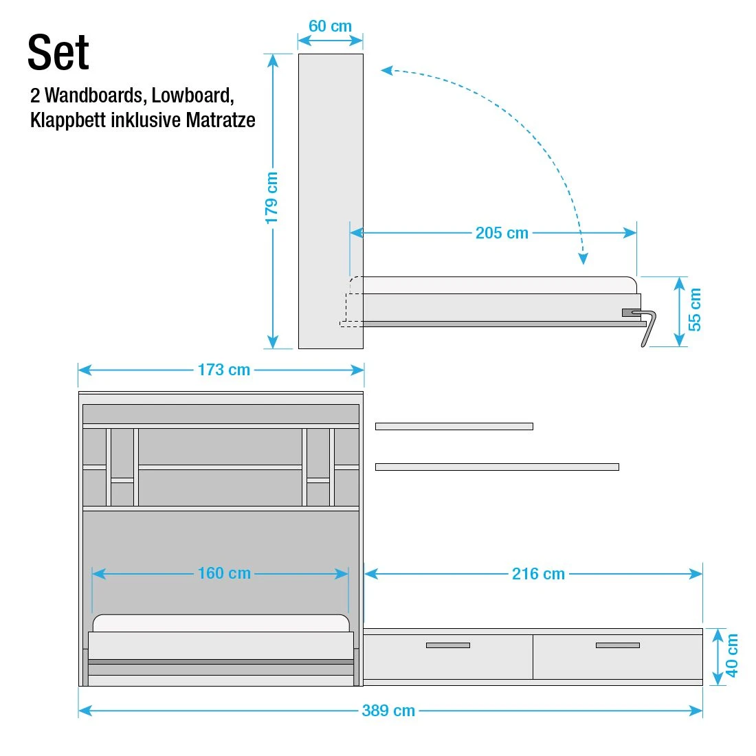 Loftscape Schrankbett-Kombination Majano – Weiß – 160 x 205cm – Kaltschaummatratze