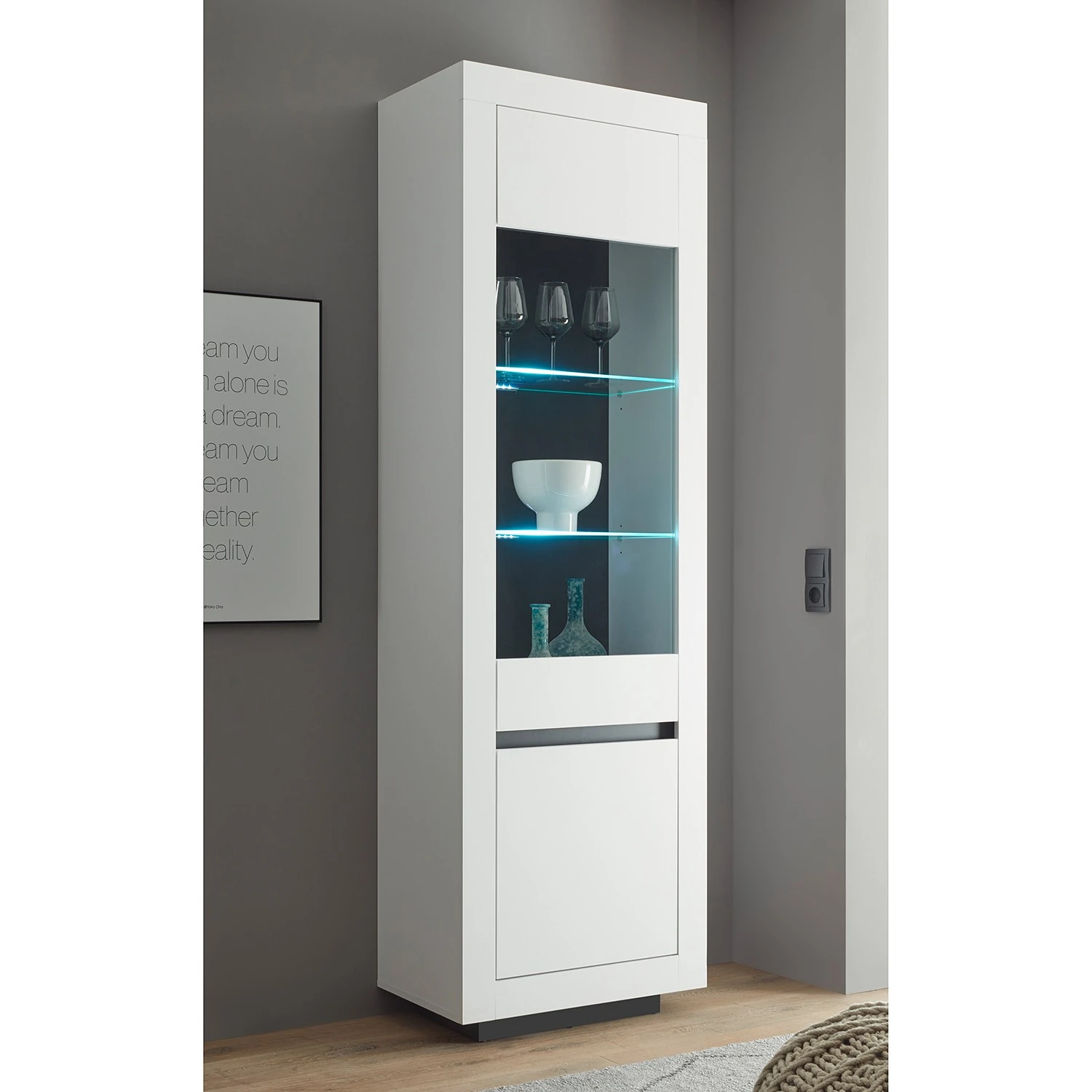 - Lieferumfang: Vitrine ohne Beleuchtung & Dekoration