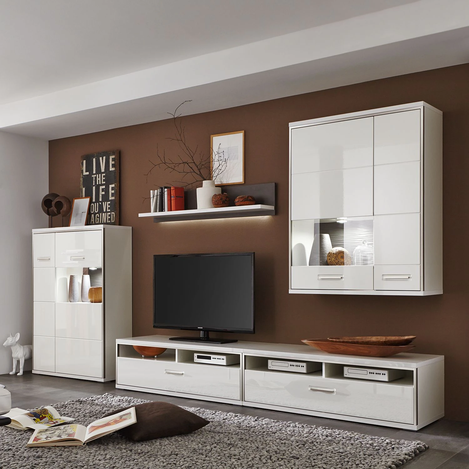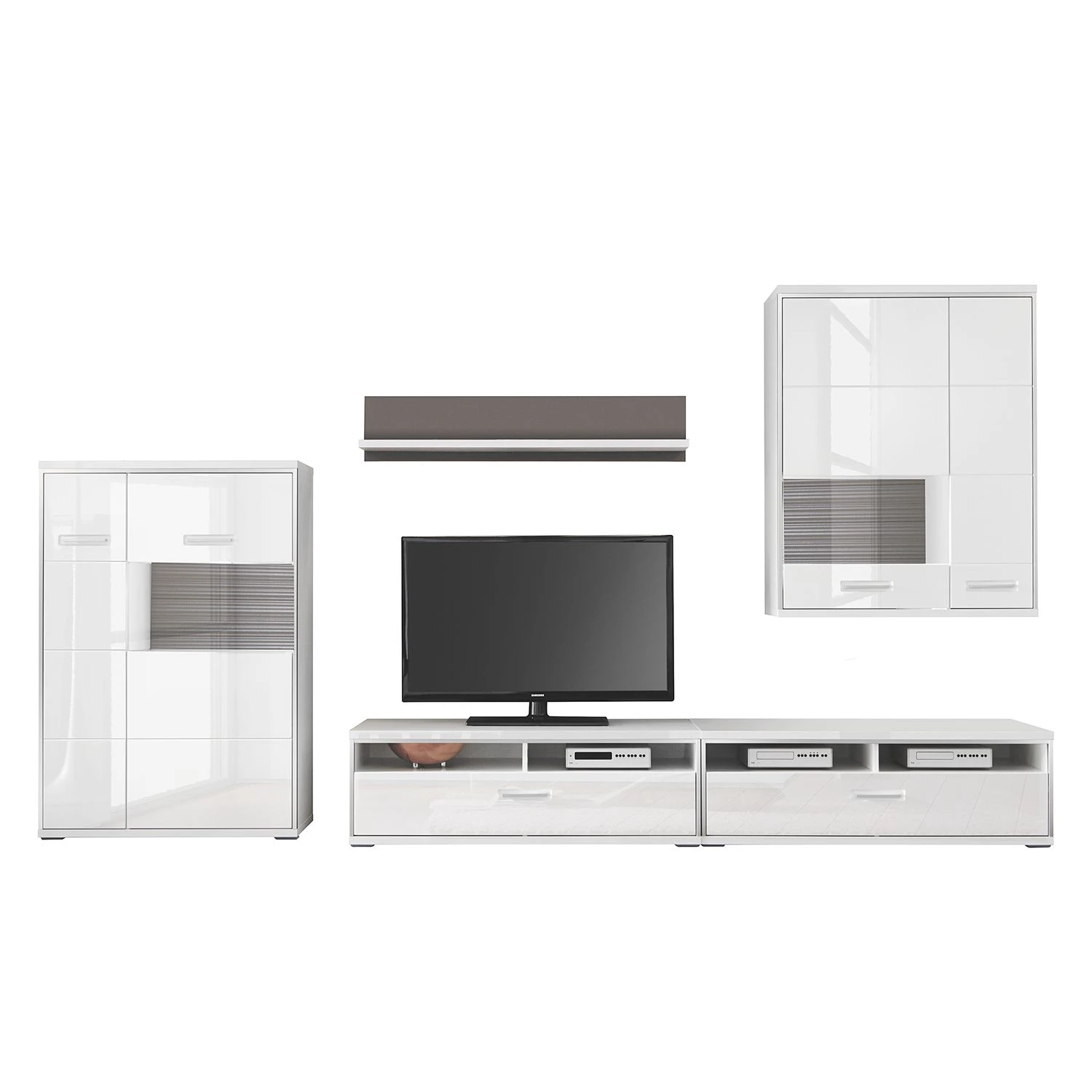 - Lieferumfang: 5-teilige Wohnwand ohne Beleuchtung & Dekoration
