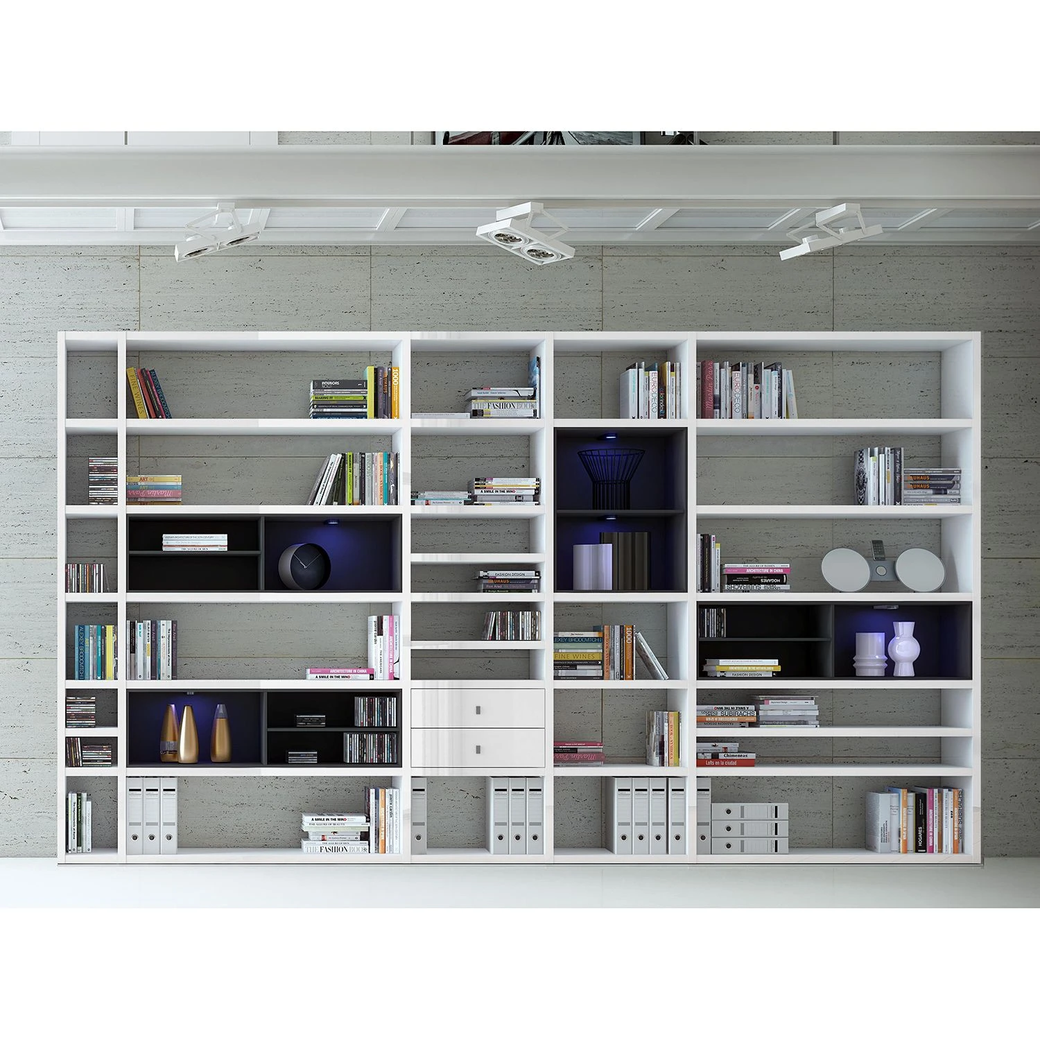 - Lieferumfang: XXL Regalwand ohne Dekoration