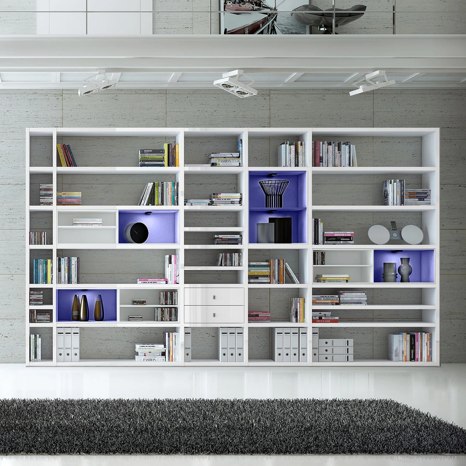 - Lieferumfang: XXL Regalwand ohne Dekoration
