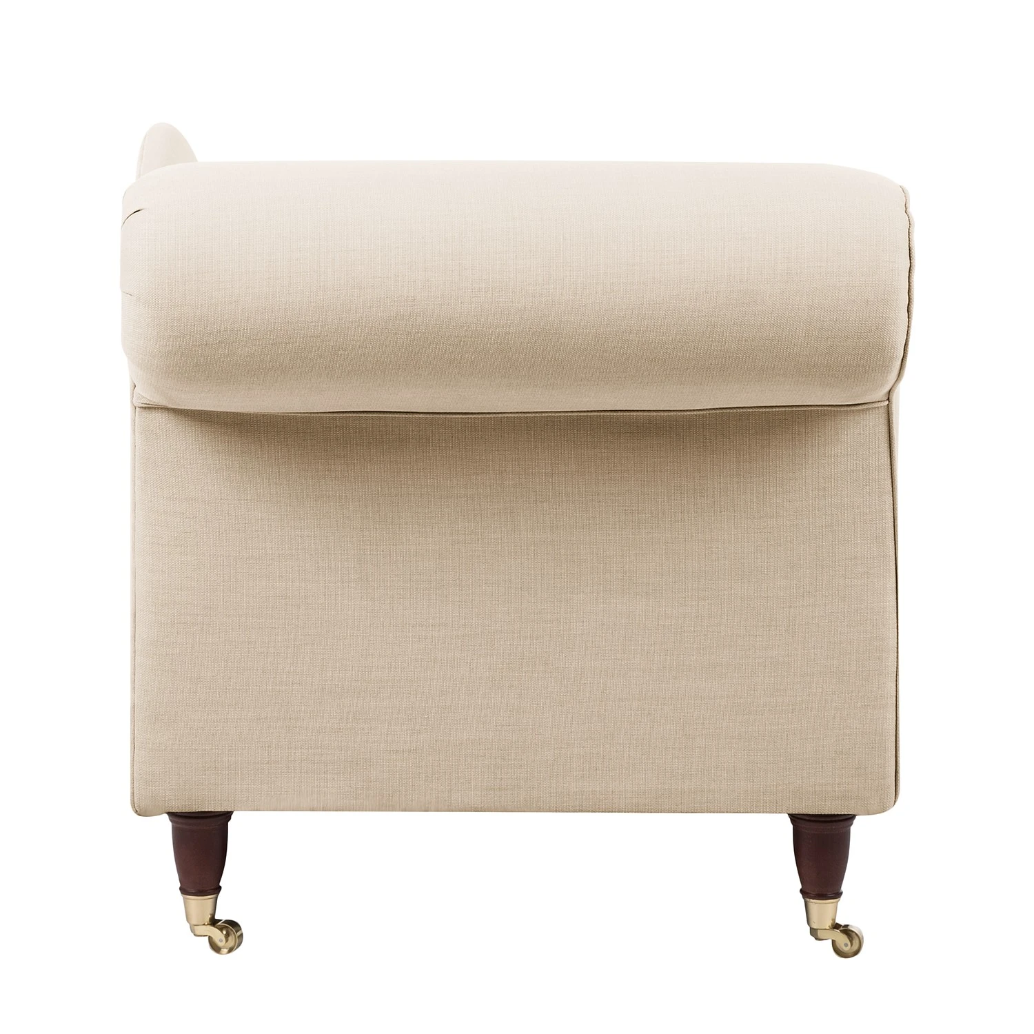 - Holzfüße mit messingfarbiger Metallrolle