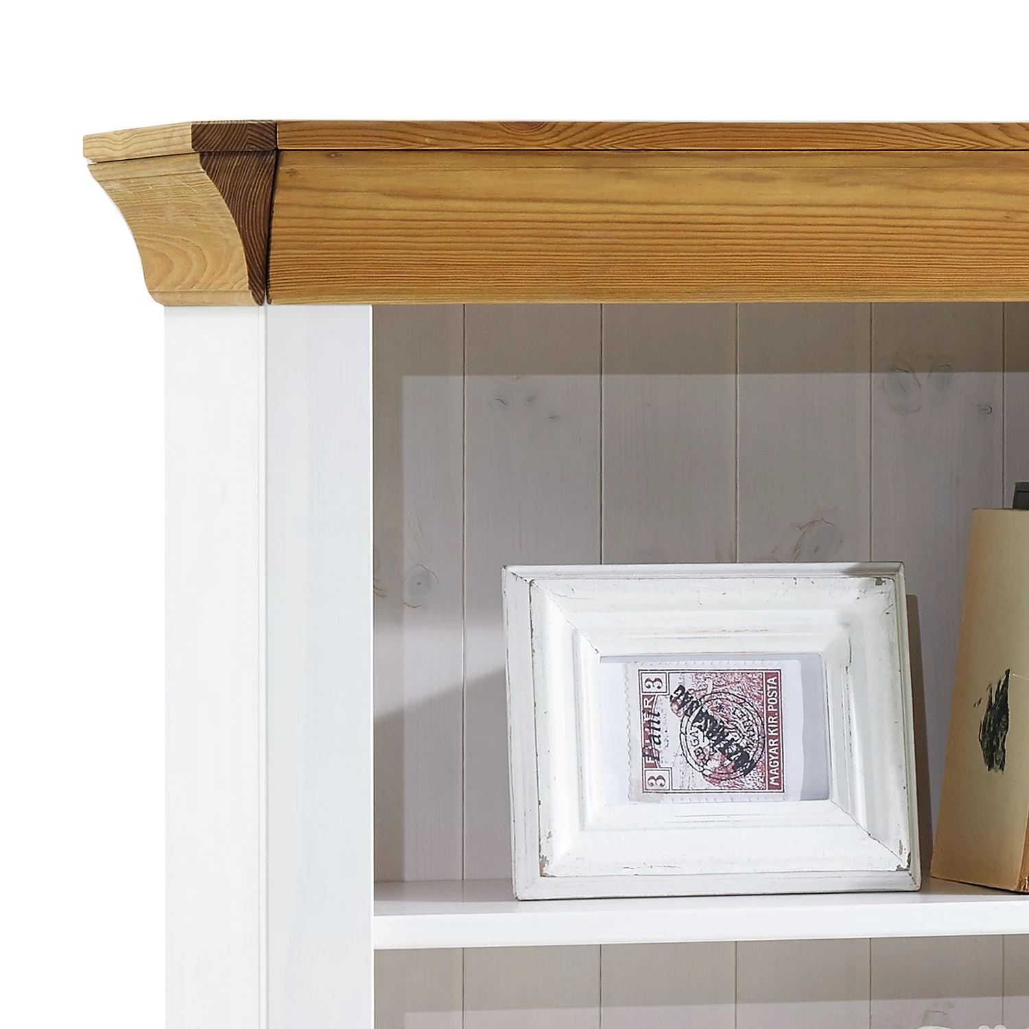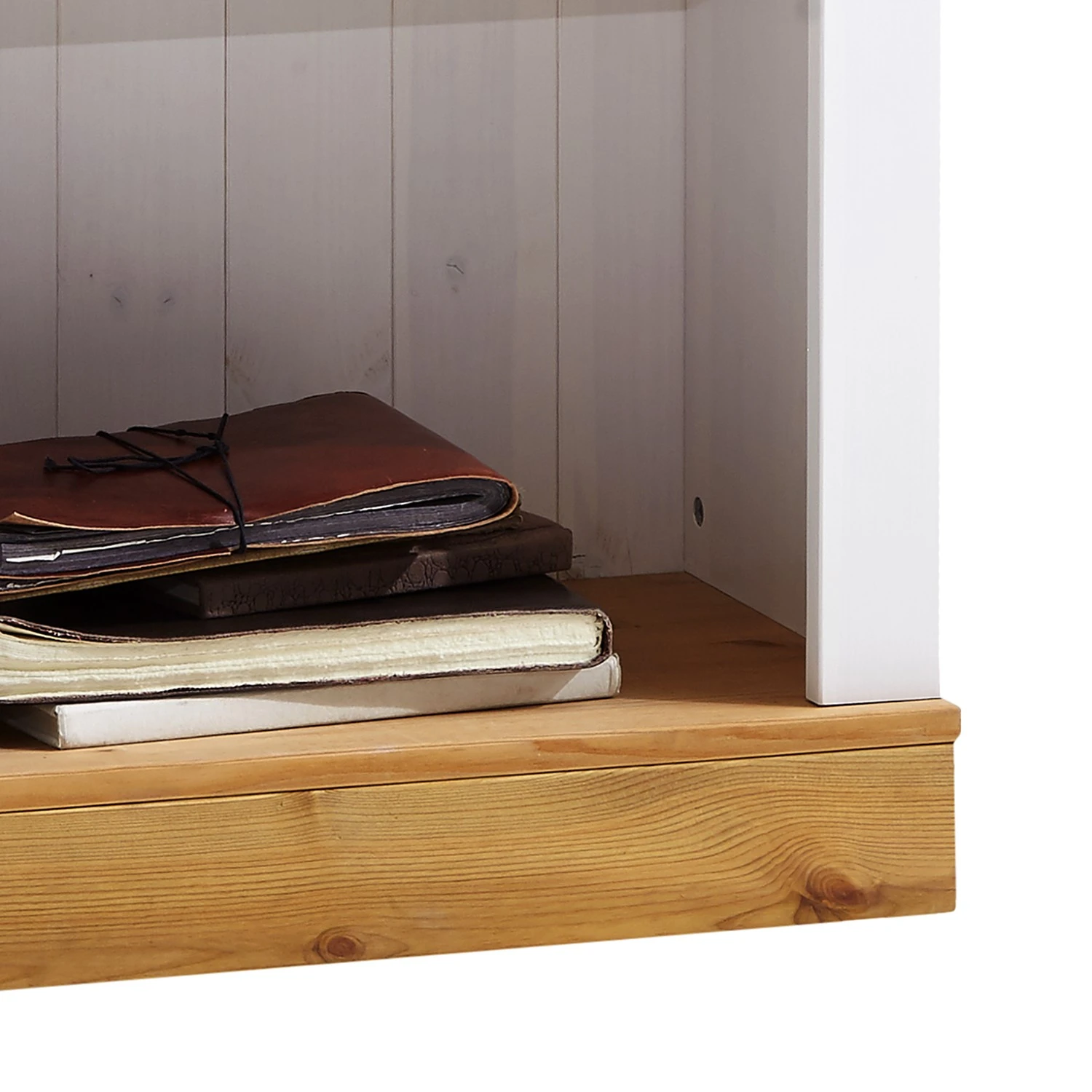 - Front & Korpus: Massivholz Kiefer, lackiert