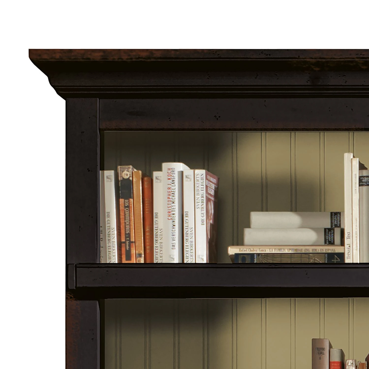 - Rück-, Seitenwände & Einlegeböden: MDF (Mitteldichte Holzfaserplatte), lackiert
