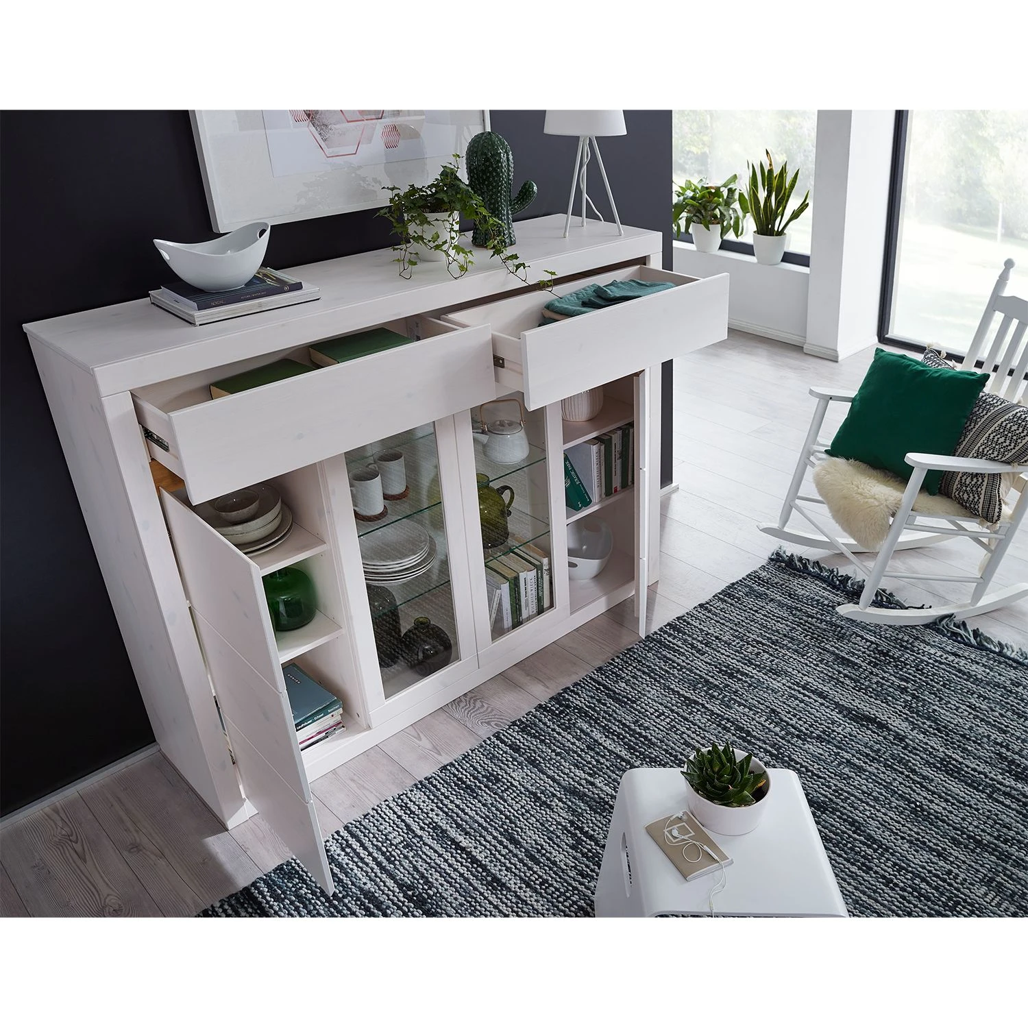 - Front & Korpus: Massivholz Kiefer, gewachst