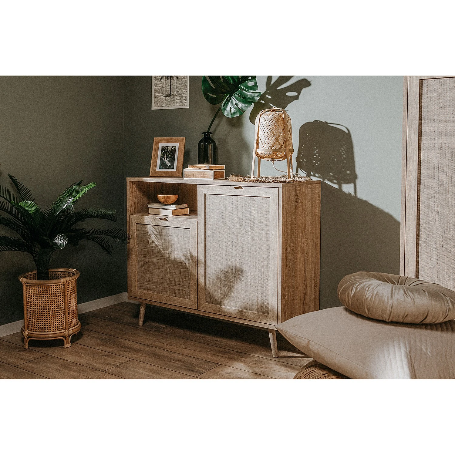 - Weitere Qualitätsmerkmale: Front mit Rafia-Print