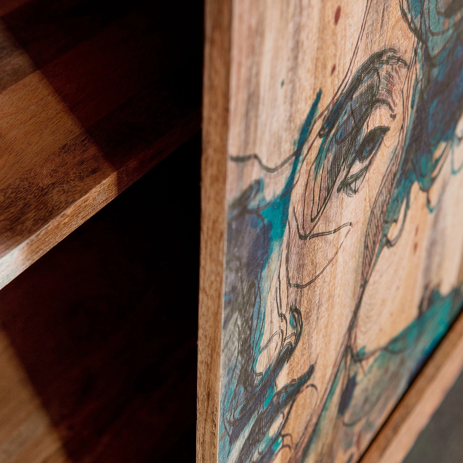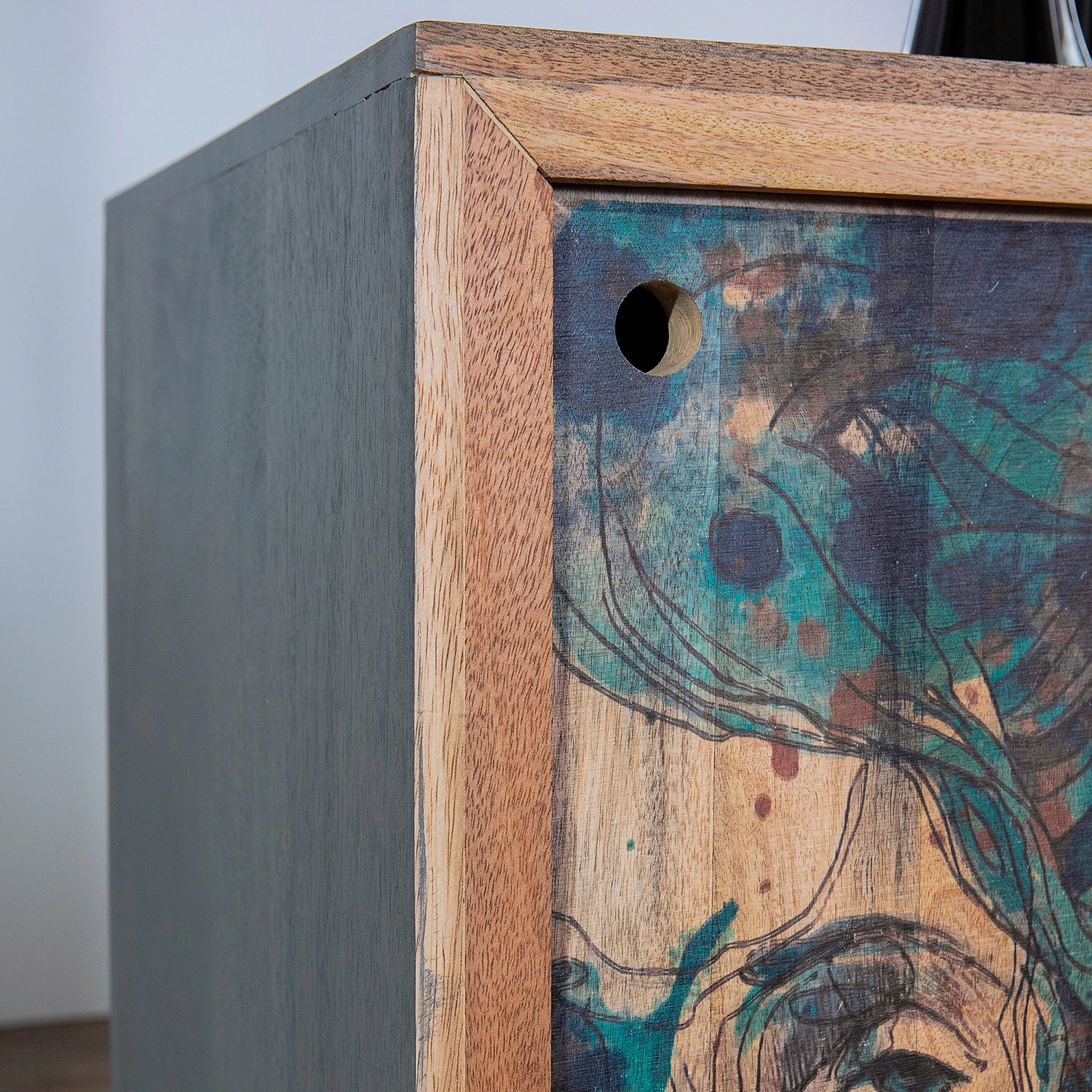 - Front: Massivholz Mango, bedruckt