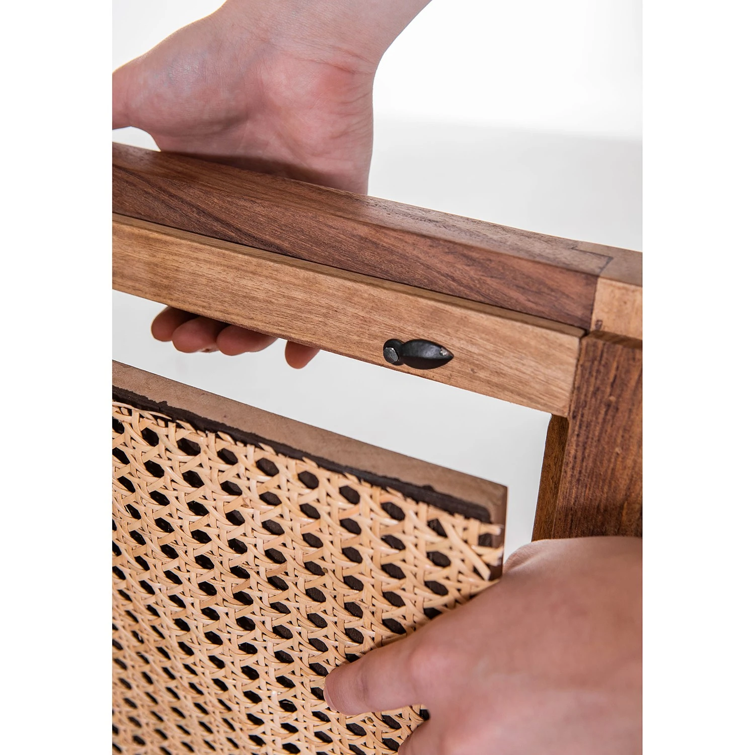 - Front: Rattan / Massivholz Mango, gebeizt & lackiert