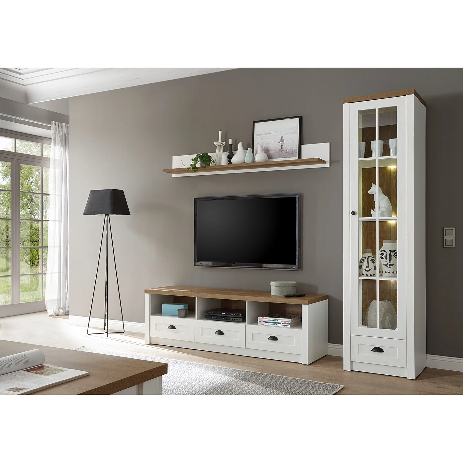 - Lieferumfang: 1 Wandboard, 1 Lowboard & 1 Regal ohne Beleuchtung & Dekoration