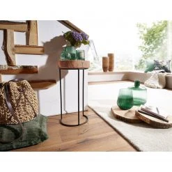Naturoo Beistelltisch Palos I – Akazie massiv / Metall – Akazie / Schwarz – Höhe: 55 cm