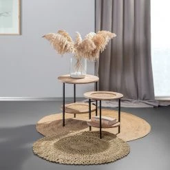Red Living Beistelltisch Fenay IV (2er-Set) – Wiener Geflecht / Akazie massiv – Akazie / Schwarz