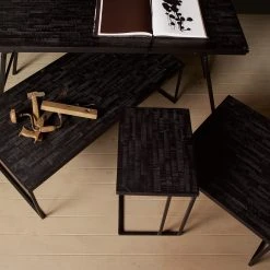 Red Living Beistelltisch Potosi (3er-Set) – Akazie massiv / Metall – Akazie / Schwarz