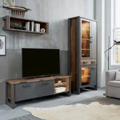 Trendteam Vitrinenschrank Prime – Altholz Pinie Dekor / Anthrazit