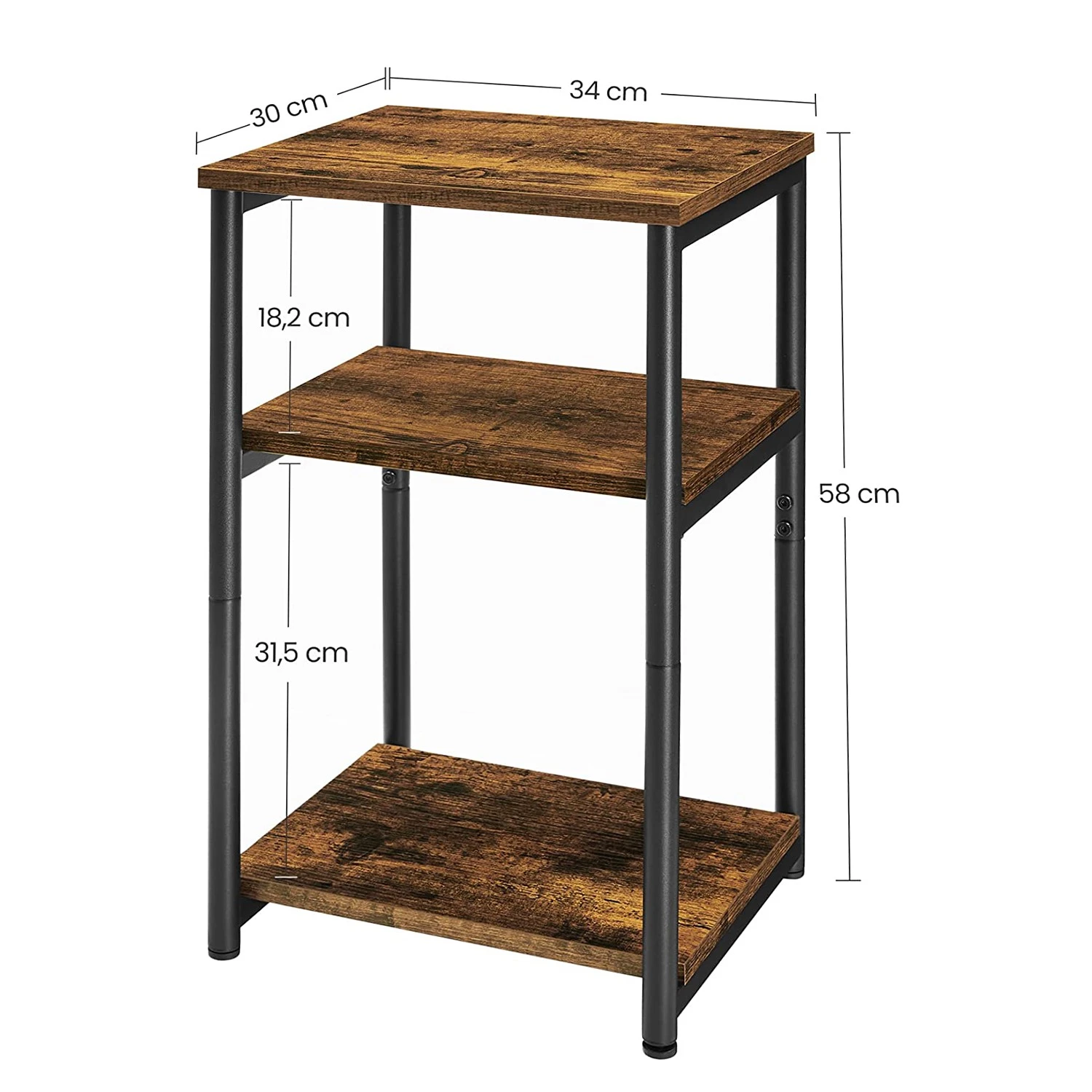- Tischplatte & Ablagen: Braun