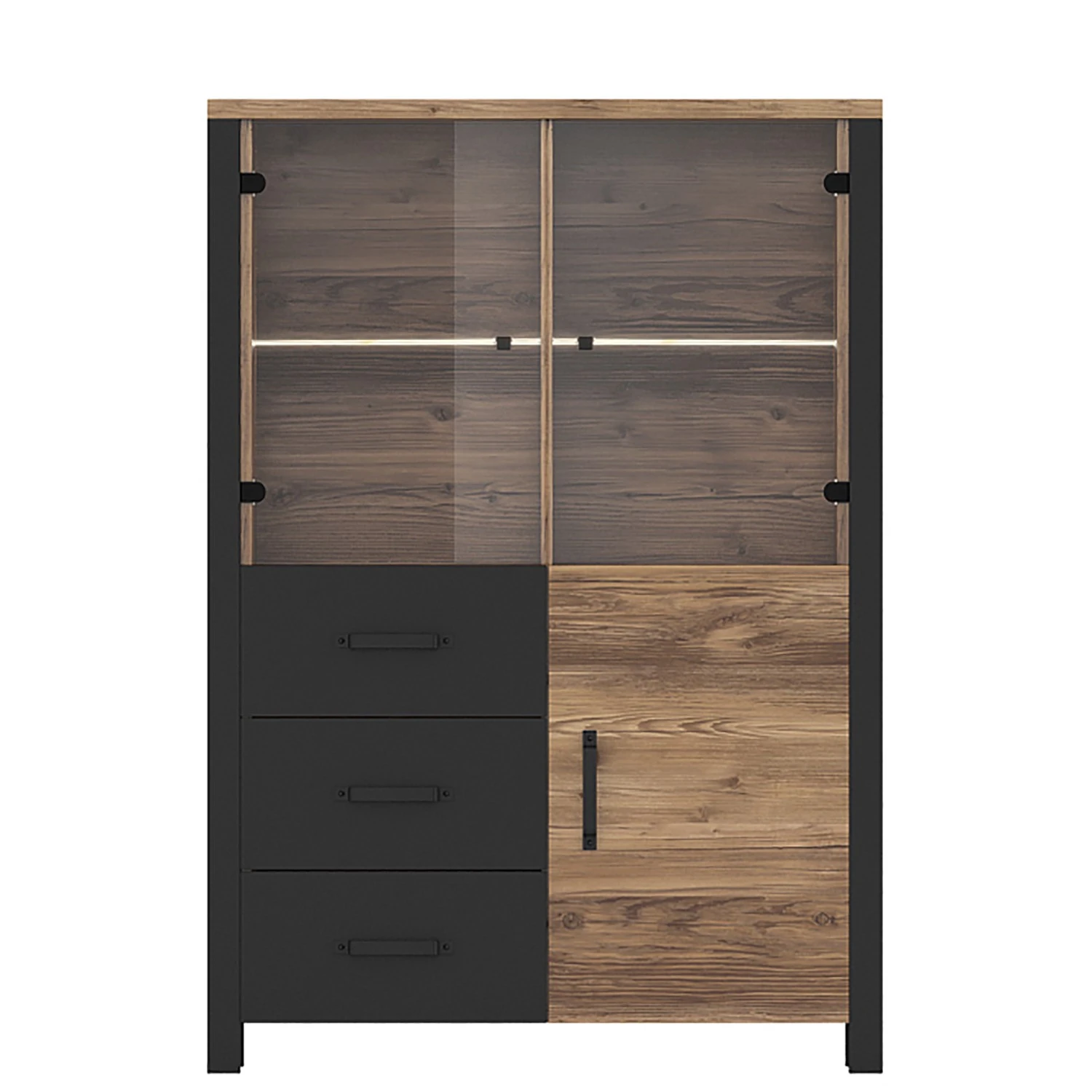 - Lieferumfang: Wohnwand bestehend aus 1 Vitrine, 1 Wandboard, 1 Lowboard & 1 Sideboard ohne Beleuchtung & Dekoration