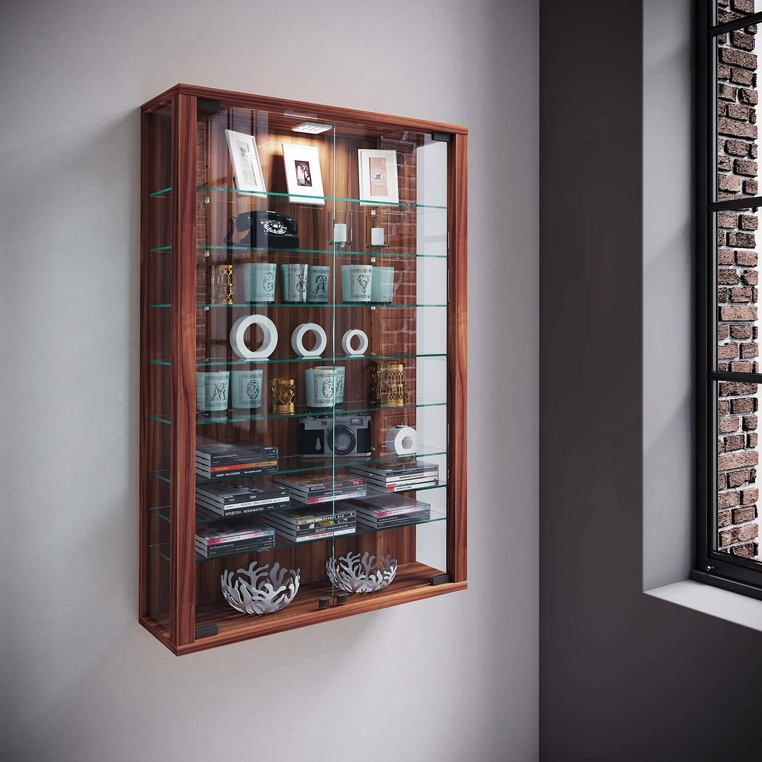 - Lieferumfang: Hängevitrine inkl. Beleuchtung, ohne Dekoration