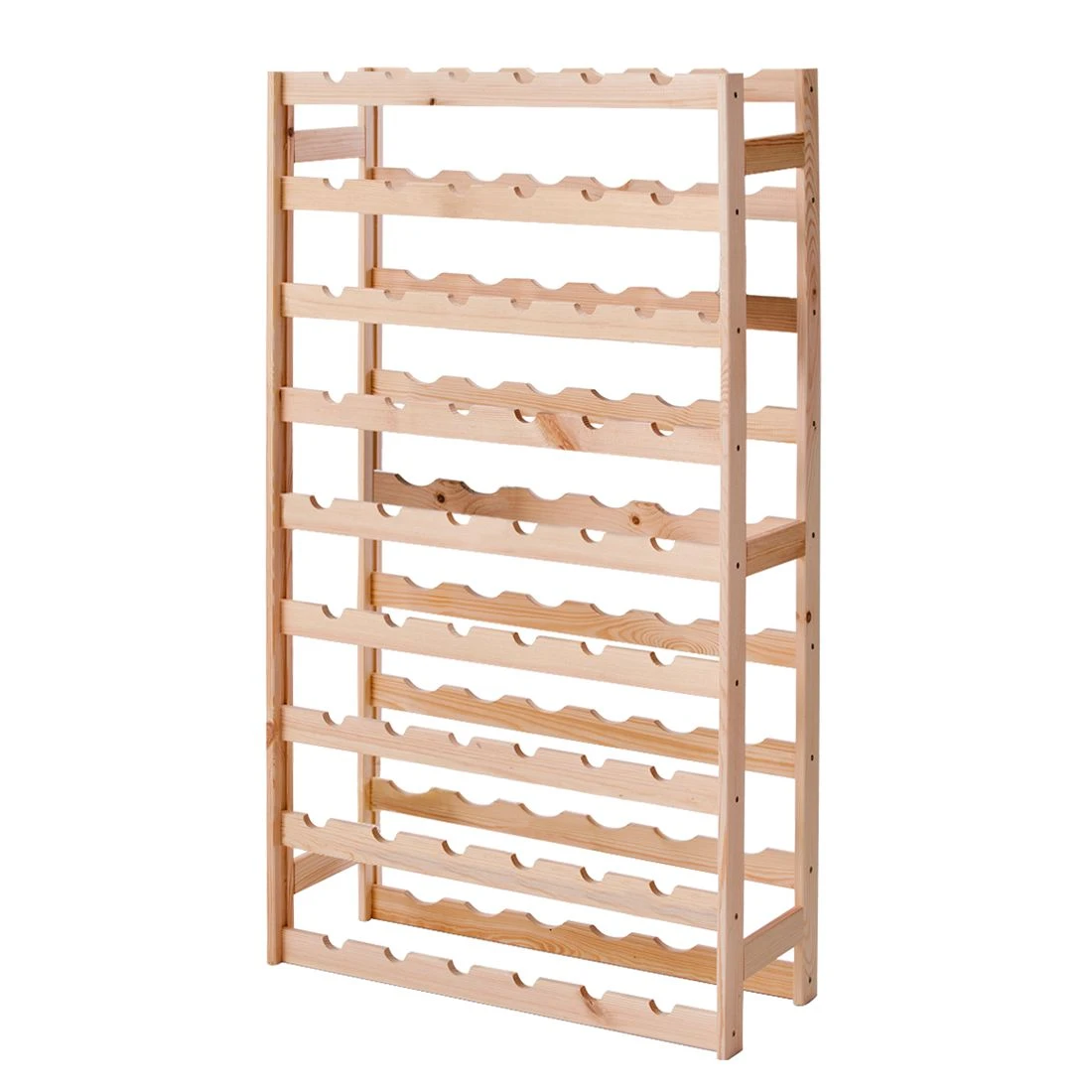 Dank des Massivholzes in Kombination mit der gut durchdachten Konstruktion bietet Dir das Regal für insgesamt 54 Flaschen Platz, ohne dass Du dir um die Stabilität sorgen machen musst. Setze mit diesem Weinregal im minimalistischen Designkonzept ein Statement in Deinem Zuhause.
